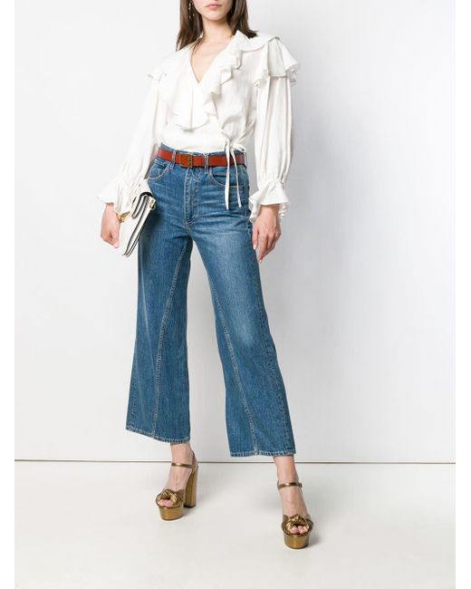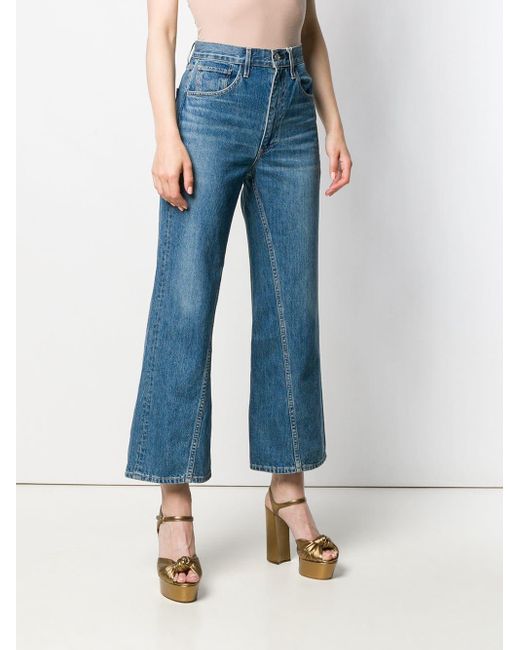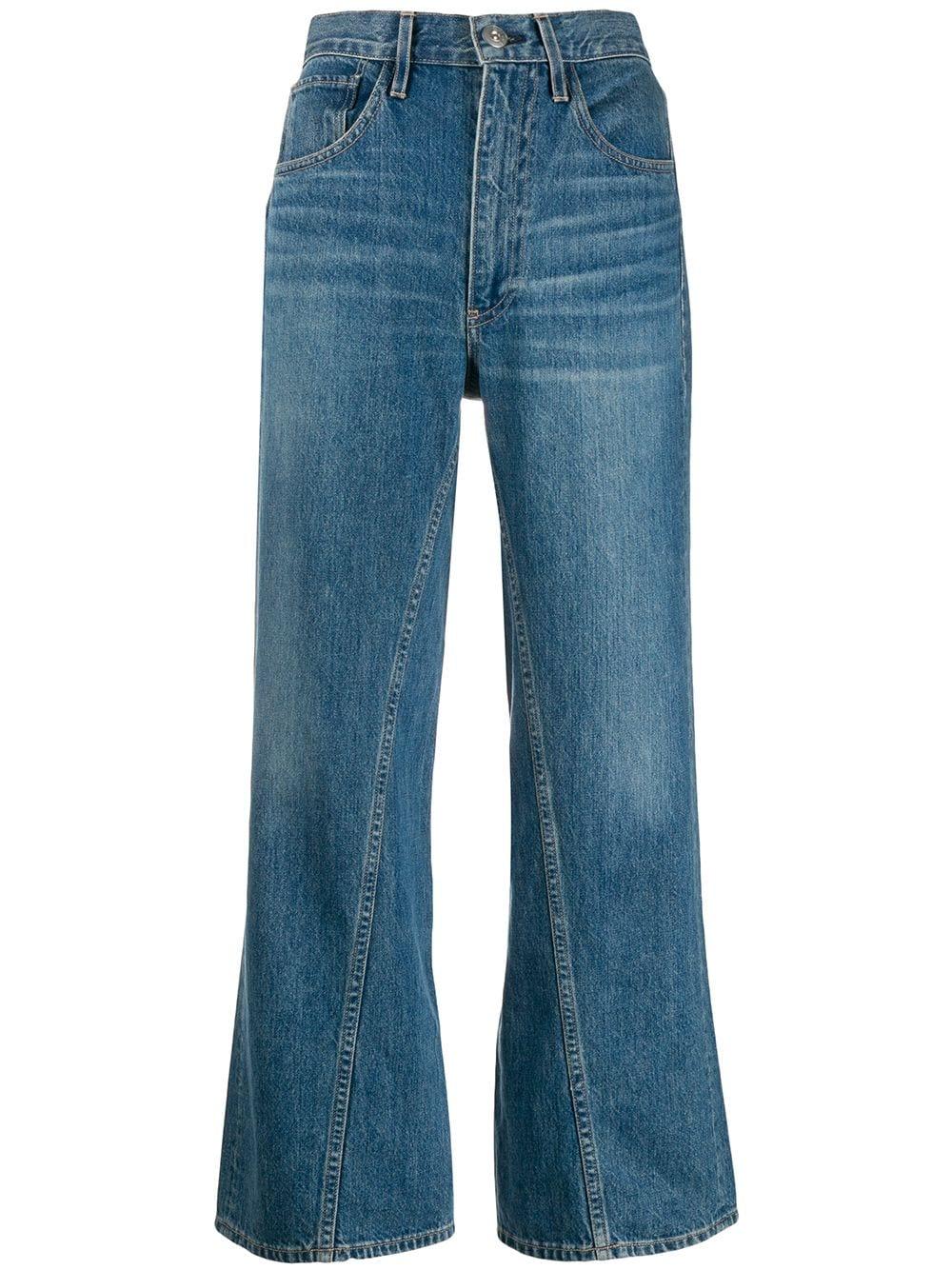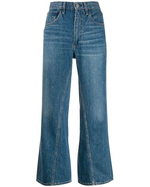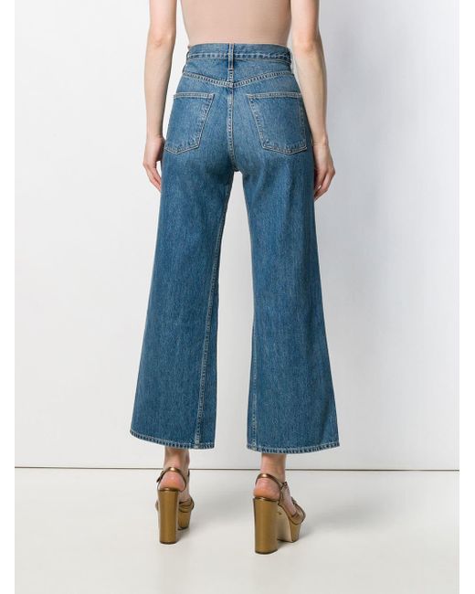 Aimee cropped jeans van 3X1 uitgevoerd in katoen voorzien van high-rise, riemlussen, knoop-en ritssluiting voorzijde, five-pocket-design, wijd uitlopende pijpen en een cropped lengte. Kleur: blauw