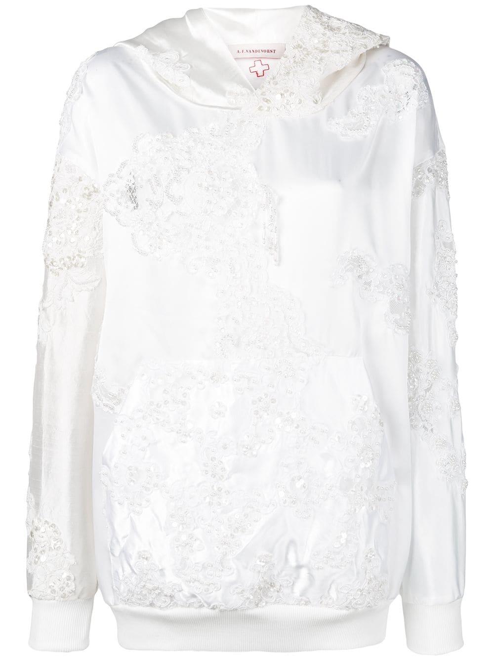 Hoodie met borduursel van A.F.Vandevorst voorzien van lange mouwen, relaxte pasvorm, bedrukt en geribde zoom en manchetten. Kleur: wit