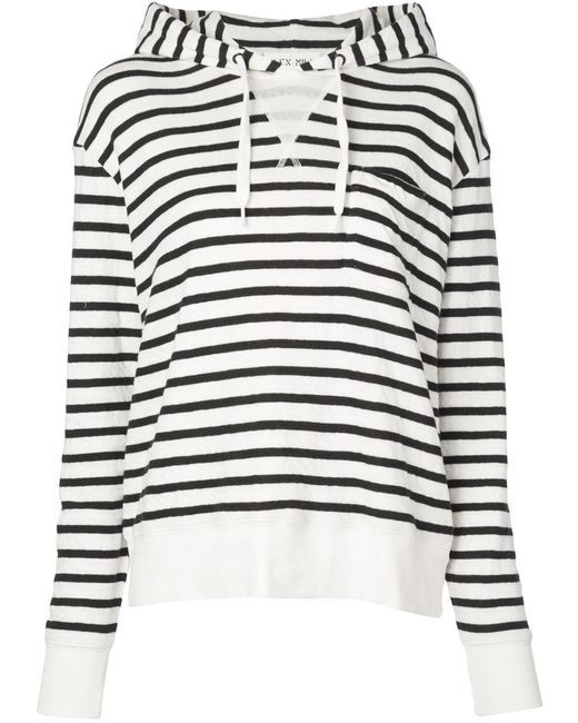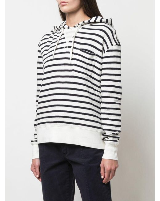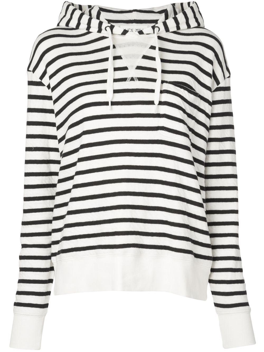 Gestreepte hoodie van Alex Mill uitgevoerd in katoen voorzien van capuchon met trekkoord, borstzak, streep dessin en geribde zoom en manchetten. Kleur: wit