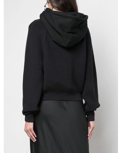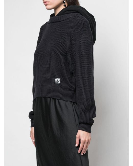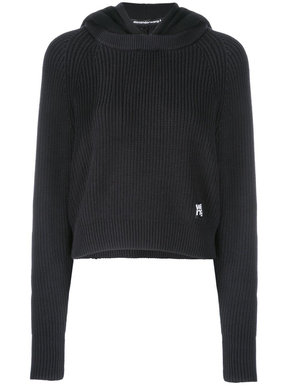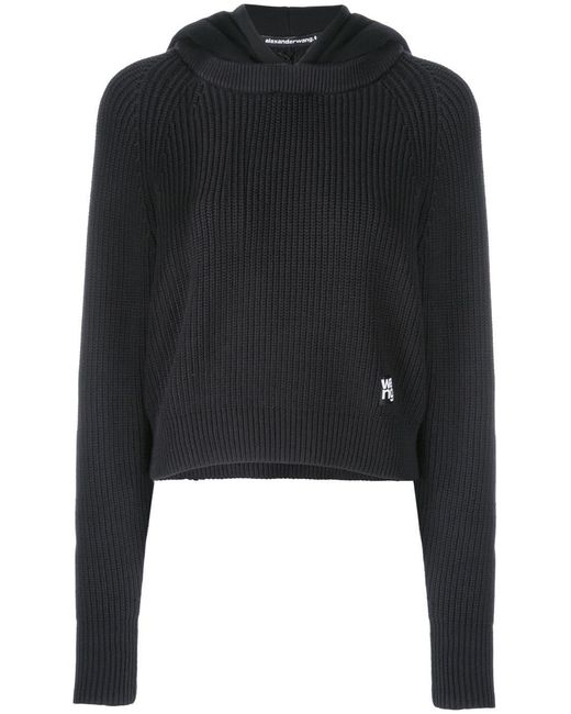 Gebreide hoodie van Alexander Wang uitgevoerd in gemixt katoen voorzien van geribd design, capuchon met trekkoorden, lange mouwen en geribde zoom en manchetten. Kleur: blauw