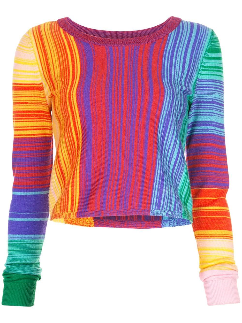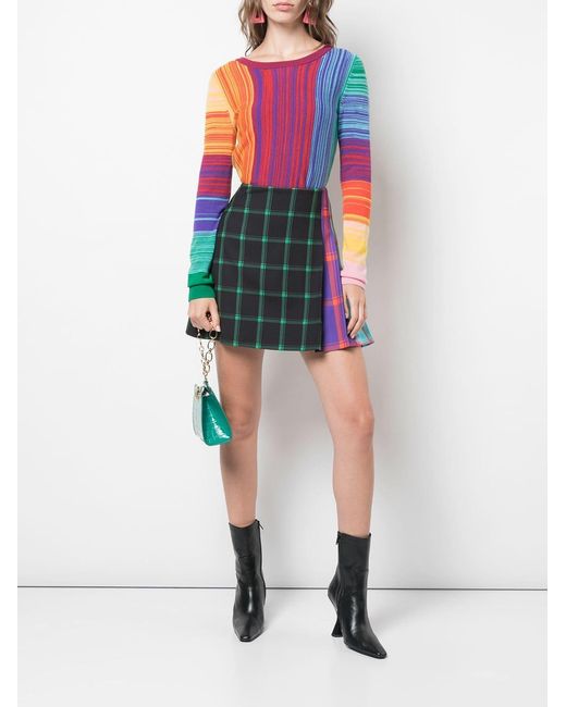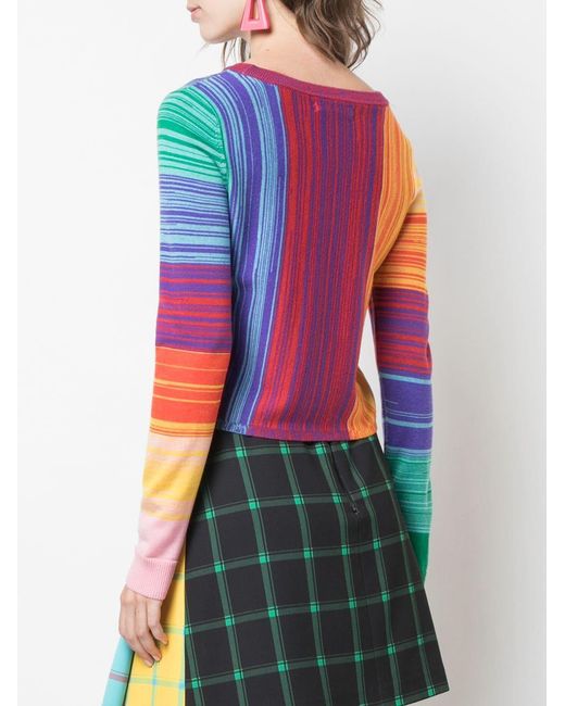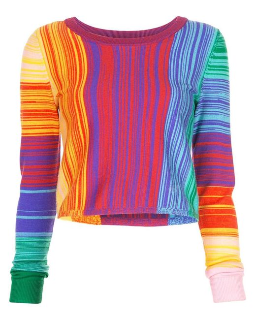 Connie trui van Alice+Olivia uitgevoerd in wol voorzien van ronde hals, lange mouwen, rechte zoom, contrasterend colourblock design en gestreept patroon. Kleur: rood