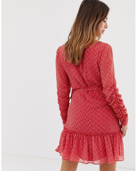 Mini-jurk van AllSaints, Ja, dit vinden wij ook wel wat, Volledig gevoerd, Met harten, Diepuitgesneden, Model met overslag, Strikband in taille, Geplooide mouwen, Ruches langs zoom, Regular-fit, Maat valt normaal. Geboren en getogen in oost-Londen, laat AllSaints alle hoofden omkeren-90met hun leren jacks. Tegenwoordig laten versleten denim, wijde pijpen en klassieke jerseystukken de ontspannen houding vanuit het hart van het merk zien. Polyester/ print. Kleur: rood