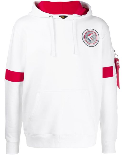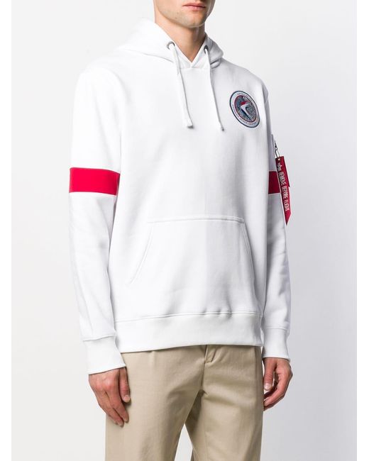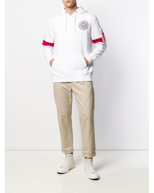 Hoodie met borduursel van Alpha Industries uitgevoerd in gemixt katoen voorzien van capuchon met trekkoord, lange mouwen, open voorzak en geribde zoom en manchetten. Kleur: wit