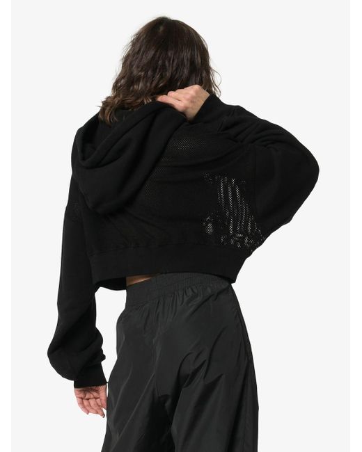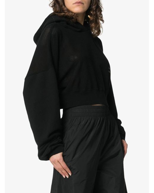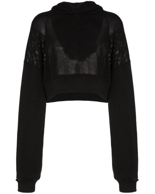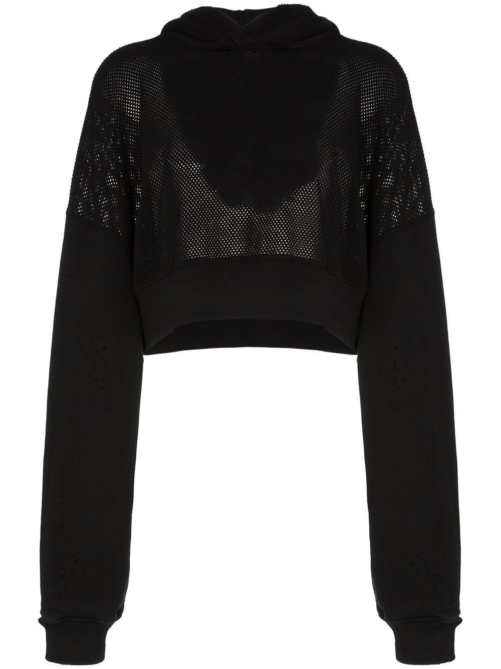 Cropped trui van Amiri uitgevoerd in katoen voorzien van capuchon, transparant bovenwerk, laag geplaatste mouwinzetten, lange mouwen en geribde manchetten. Kleur: zwart