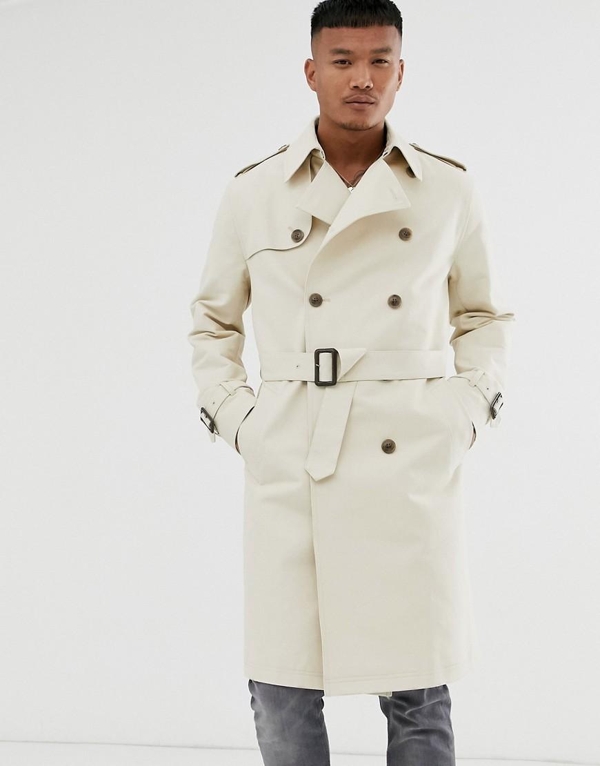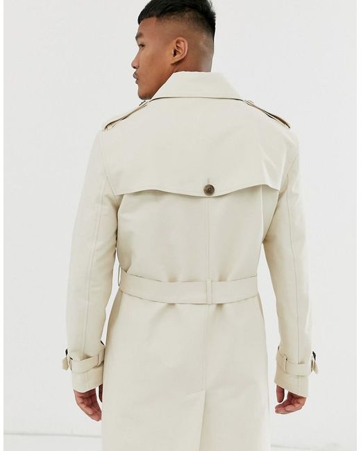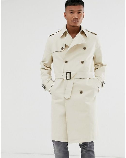 Double-breasted Trench In Kiezelkleur in het naturel voor heren