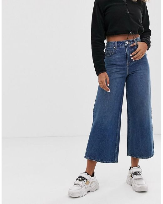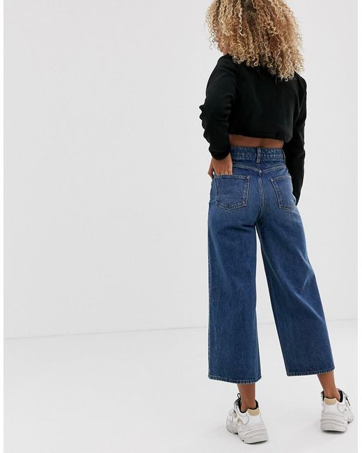 Premium Jeans Met Wijde Pijpen In Dark Stonewash Blauw voor dames
