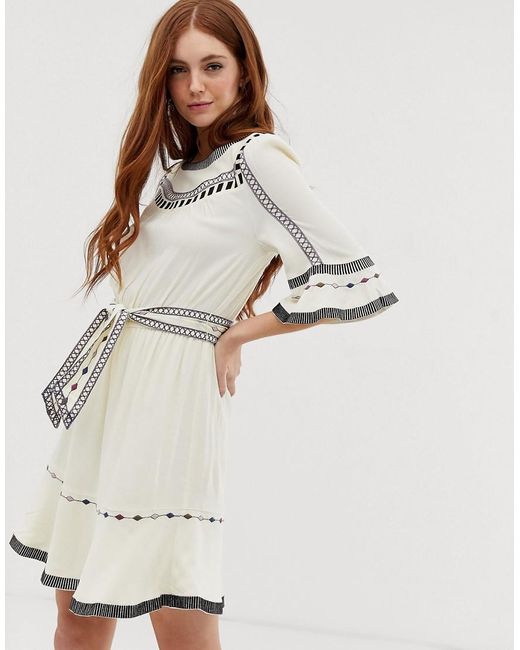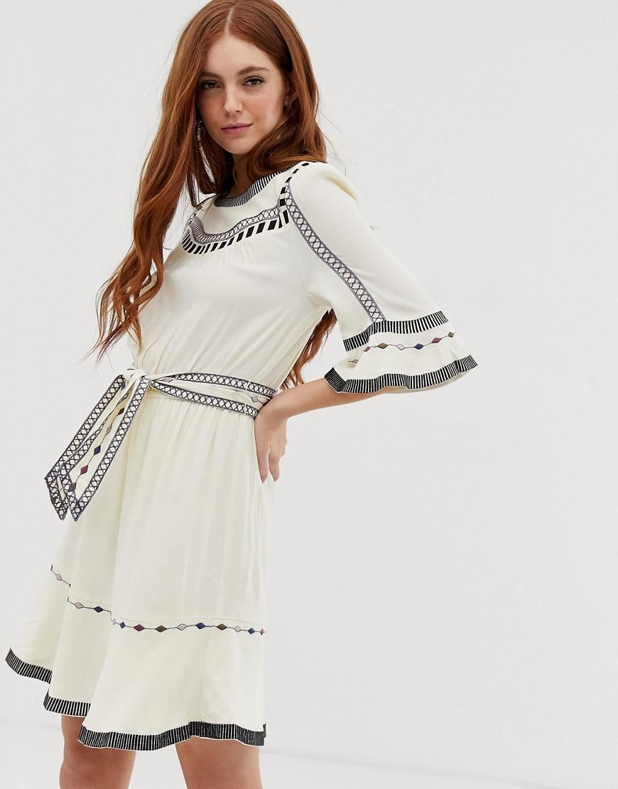 Plaza - Geborduurde Mini-jurk in het wit voor dames