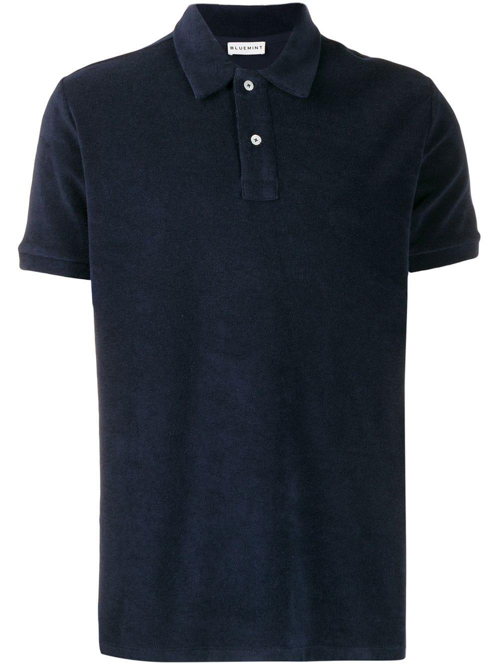 Poloshirt van handdoekstof van bluemint uitgevoerd in katoen voorzien van polo kraag, knoop voorzijde, korte mouwen en straight-fit. Kleur: blauw