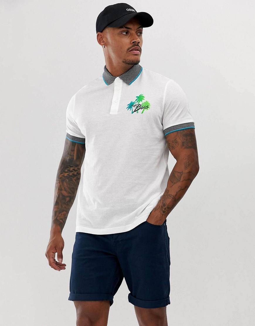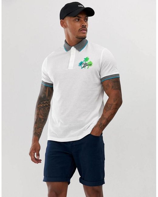 Poloshirt van BOSS, Voor overdag, Polokraag, Knoopbies, Korte mouwen, Contrasterende randen, Aansluitende boorden, Logo op de borst, Regular-fit, Gewoon jouw normale maat kiezen. BOSS, met zijn focus op kwalitatief vakmanschap en perfecte ontwerpen, biedt een scala aan premium ontspannen en gelegenheidskleding, Verwacht nette losse items, gecombineerd met luxe sportkleding en ontspannen kleding in een hedendaagse selectie van pakken, overhemden, broeken en T-shirts. Katoen. Kleur: wit