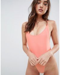Badpak van Brave Soul, Klaar voor het water, Effen model, Hou het simpel, Lage ronde hals en rug, Slip-model. Elastaan/ polyamide/ polyester. Kleur: oranje