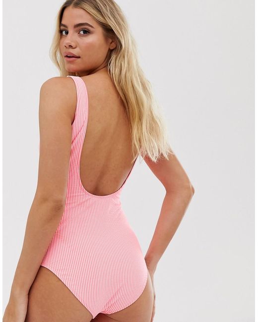 Gestreept Badpak Met Lage Ronde Achterkant in het oranje voor dames