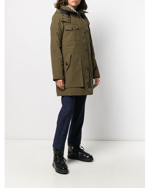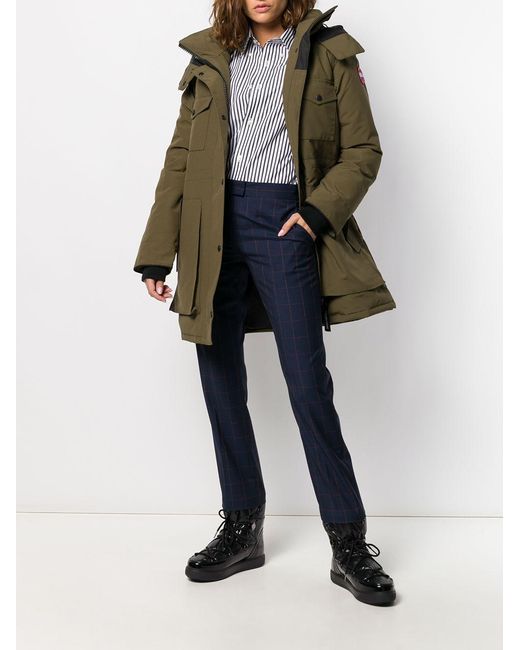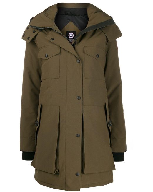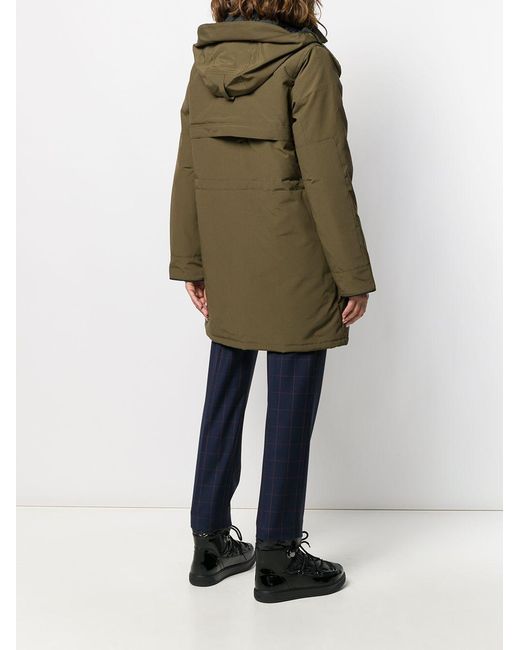 Parka van Canada Goose uitgevoerd in veer naar beneden voorzien van capuchon, gewatteerde binnenkant, logo op de linkerarm, rits aan de voorkant, middellange lengte en voorzakken met kliksluiting. Kleur: groen