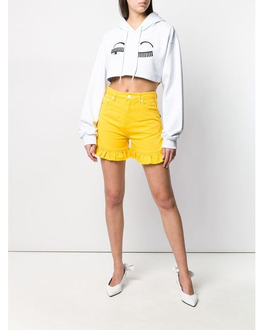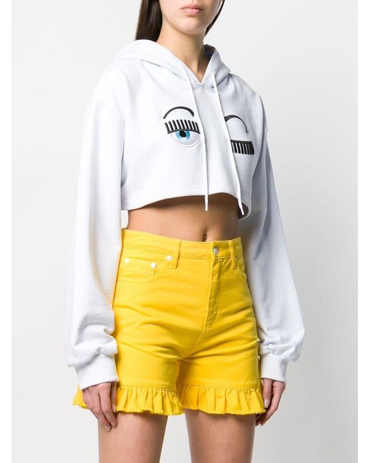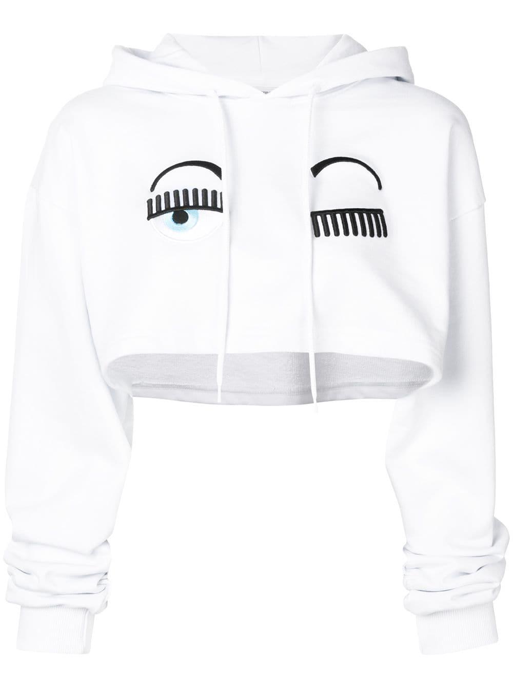 Cropped hoodie van Chiara Ferragni uitgevoerd in katoen voorzien van capuchon met trekkoorden, lange mouwen, loose fit en een cropped lengte. Kleur: wit