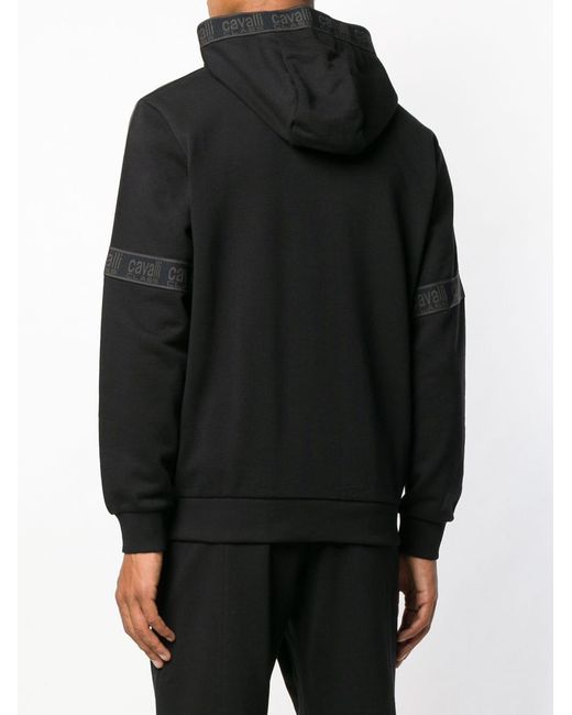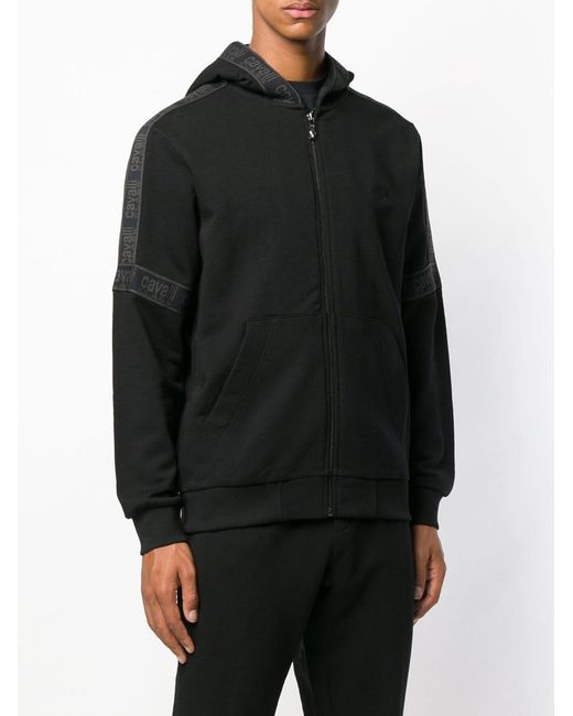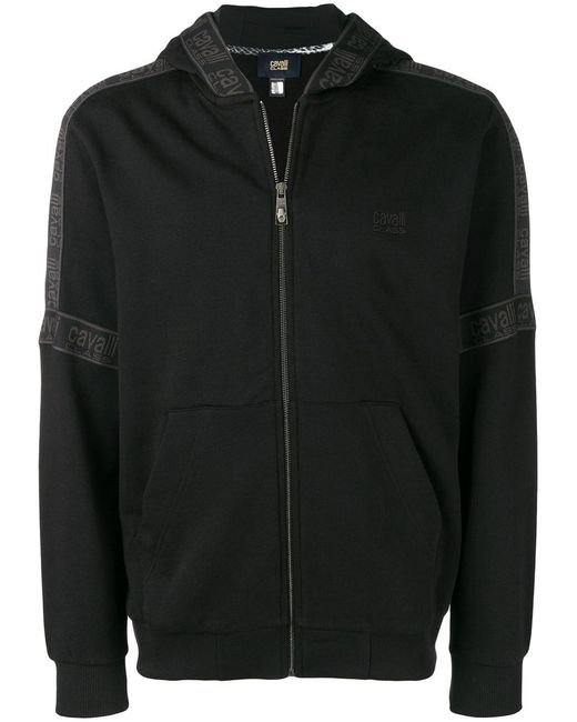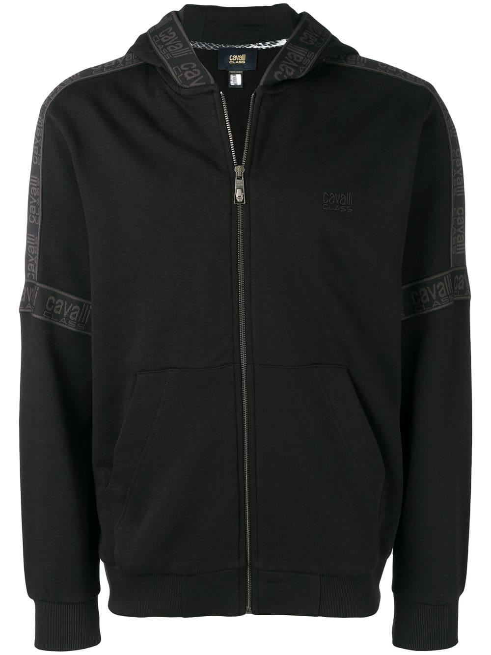 Hoodie met logoprint van Cavalli Class uitgevoerd in katoen voorzien van capuchon, rits aan de voorkant, lange mouwen, rechte zoom en kangaroe zak. Kleur: zwart