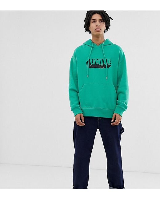 Hoodie van COLLUSION, Een onmisbare basic, Capuchon met trekkoord, Verlaagde schouders, Model dat je over het hoofd aantrekt, Kangoeroezak, Aansluitende boorden, Oversized pasvorm, Ruimvallende look. Een nieuw merk voor de wat oudere generatie die geen compromis wil tussen principes en stijl. COLLUSION gelooft dat kleding een manier is om zelfexpressie te vieren en dat de norm hierbij moet zijn dat iedereen hierin mee mag doen. Het is geen verrassing dat er is samengewerkt met zes inspirerende creatievelingen om de eerste collectie te ontwerpen. Hierin zit denim, gebreide kleding, jurken en nog veel meer. Elastaan/ katoen/ koord/ print. Kleur: groen