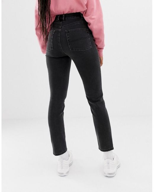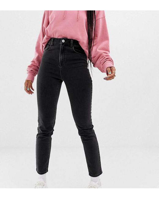 X011 - Smalle Mom Jeans In Zwart Met Wassing voor dames