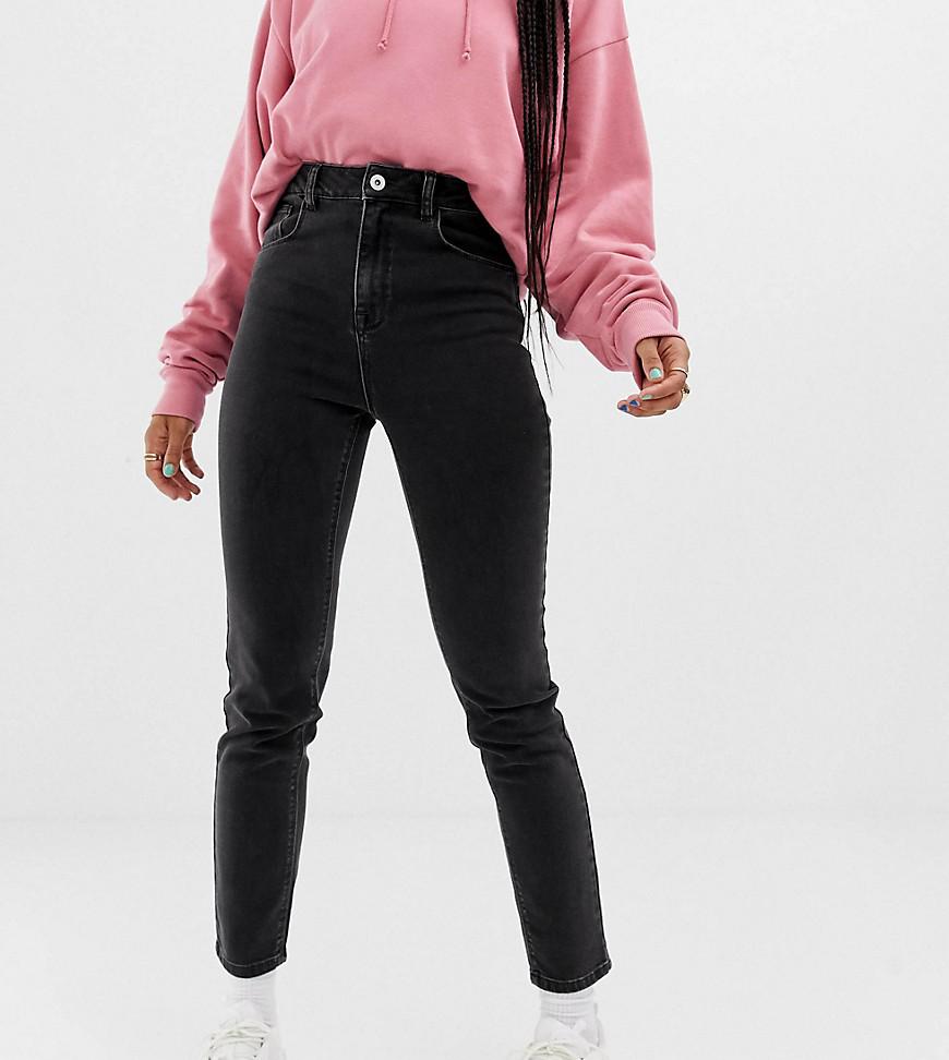 X011 - Smalle Mom Jeans In Zwart Met Wassing