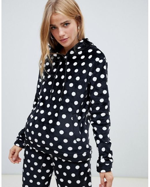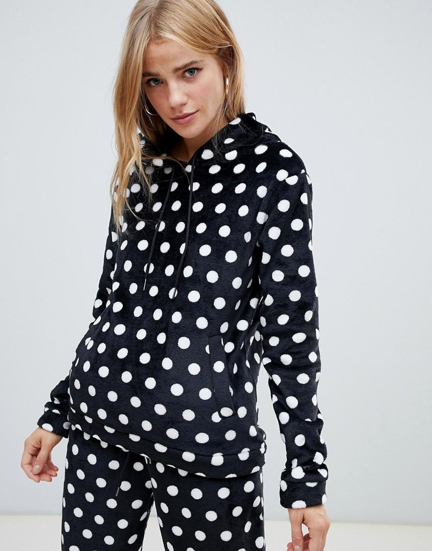 Hoodie van Daisy Street, Onderdeel van een combi-set, Voor een saamhorige look, Stippen design, Prachtig design, Capuchon met trekkoord, Kangoeroezak, Aansluitende boorden, Ruimvallende pasvorm, Voor ontspannen momenten. Als jij je trends zo snel wilt als ze komen, dan is Daisy Street het label voor jou. Altijd op hun best voegt Daisy Street's collectie van navel shirts, bodycon midis en geplooide mini rokjes een extra dimensie toe aan je garderobe. Fleece/ koord/ polyester. Kleur: zwart