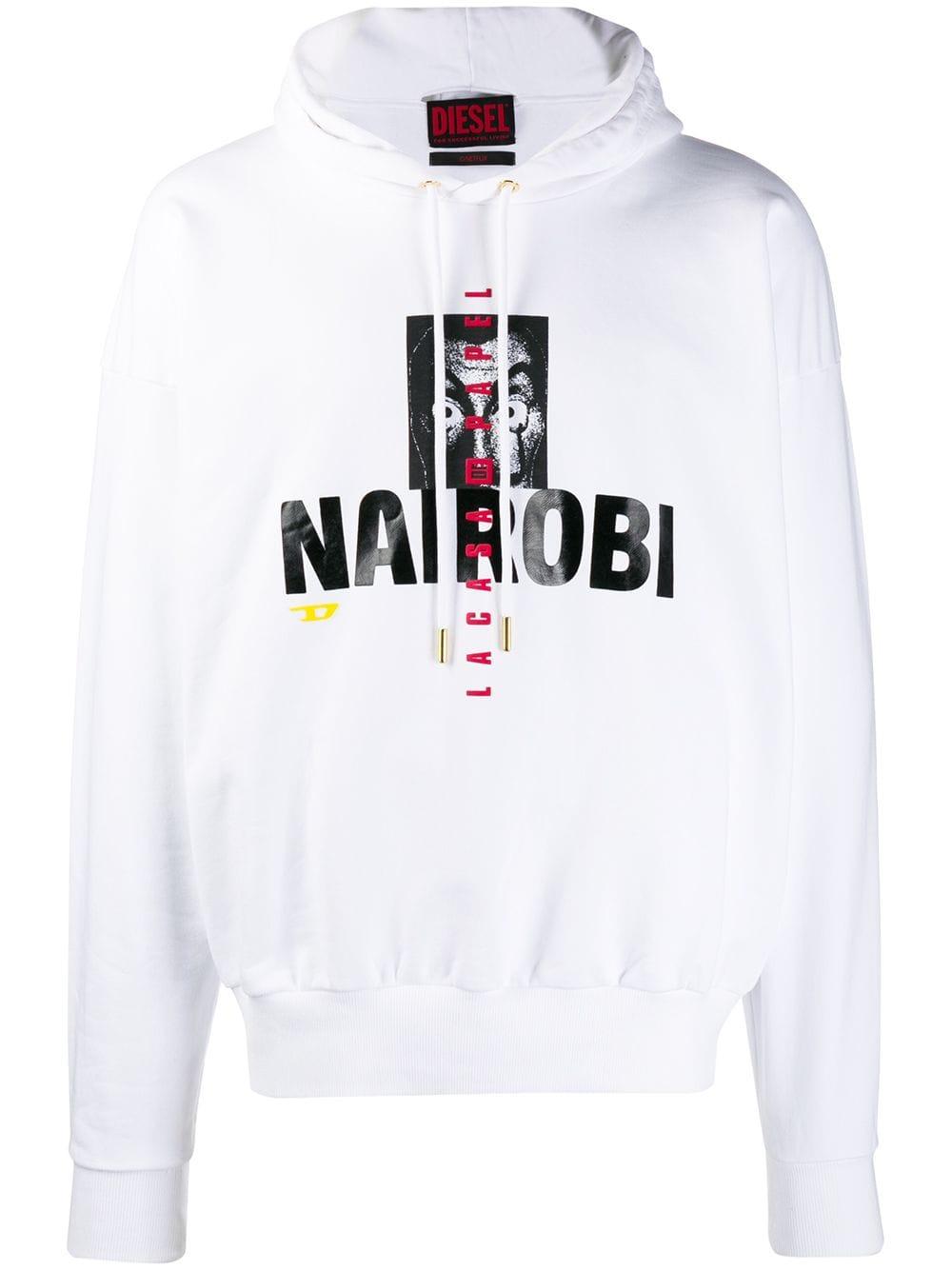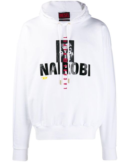 Hoodie met print van Diesel uitgevoerd in katoen voorzien van ronde hals, capuchon met trekkoorden, lange mouwen, elastische manchetten, centrale logoprint en relaxte pasvorm. Kleur: wit
