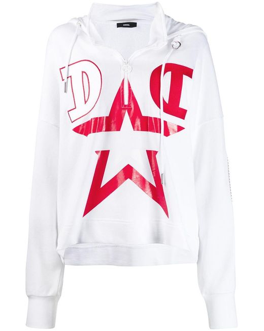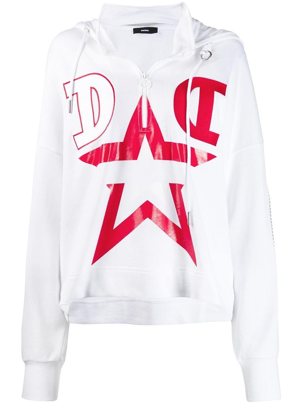 Trui met sterren van Diesel uitgevoerd in katoen voorzien van brede kraag, rits aan de voorkant, lange mouwen, geribde manchetten en rechte zoom. Kleur: wit