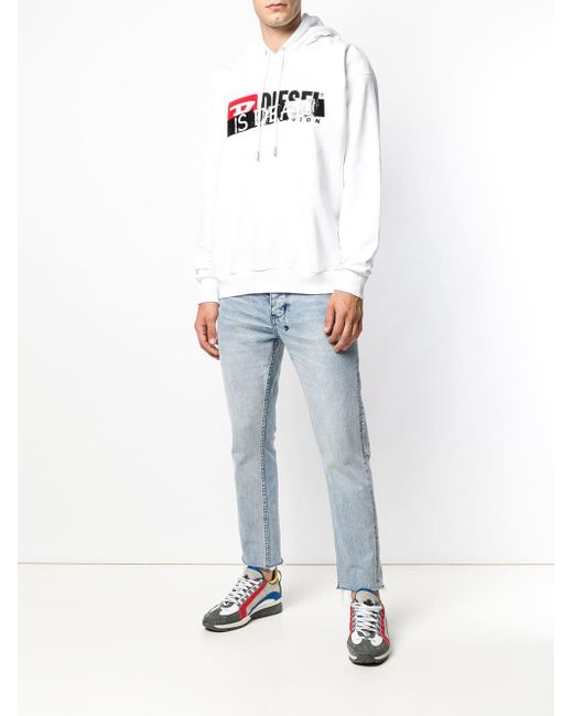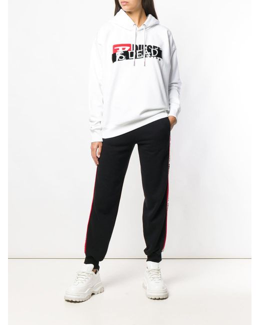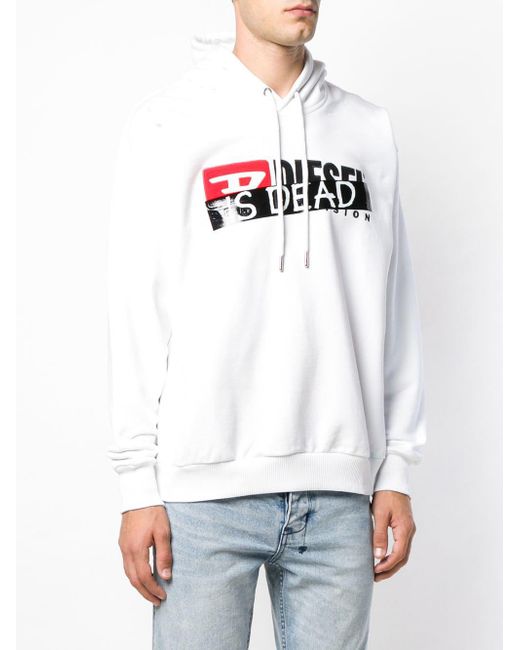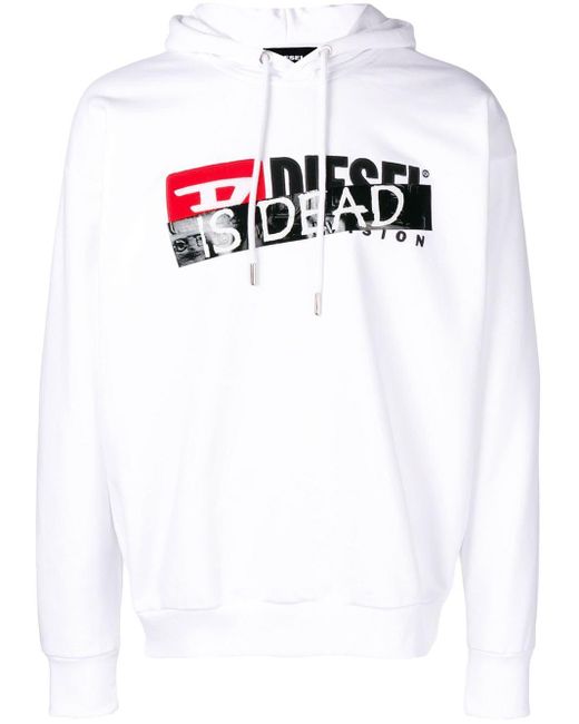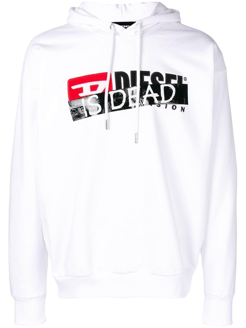 Part of Diesel's HAɄTE COUTURE campaign which aims is to take power away from the haters, this white cotton 'Is dead' print hoodie from Diesel features a drawstring hood, an embroidered logo to the front, long sleeves and a ribbed hem and cuffs. Kleur: wit