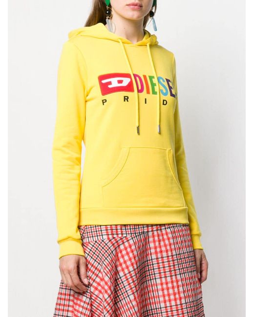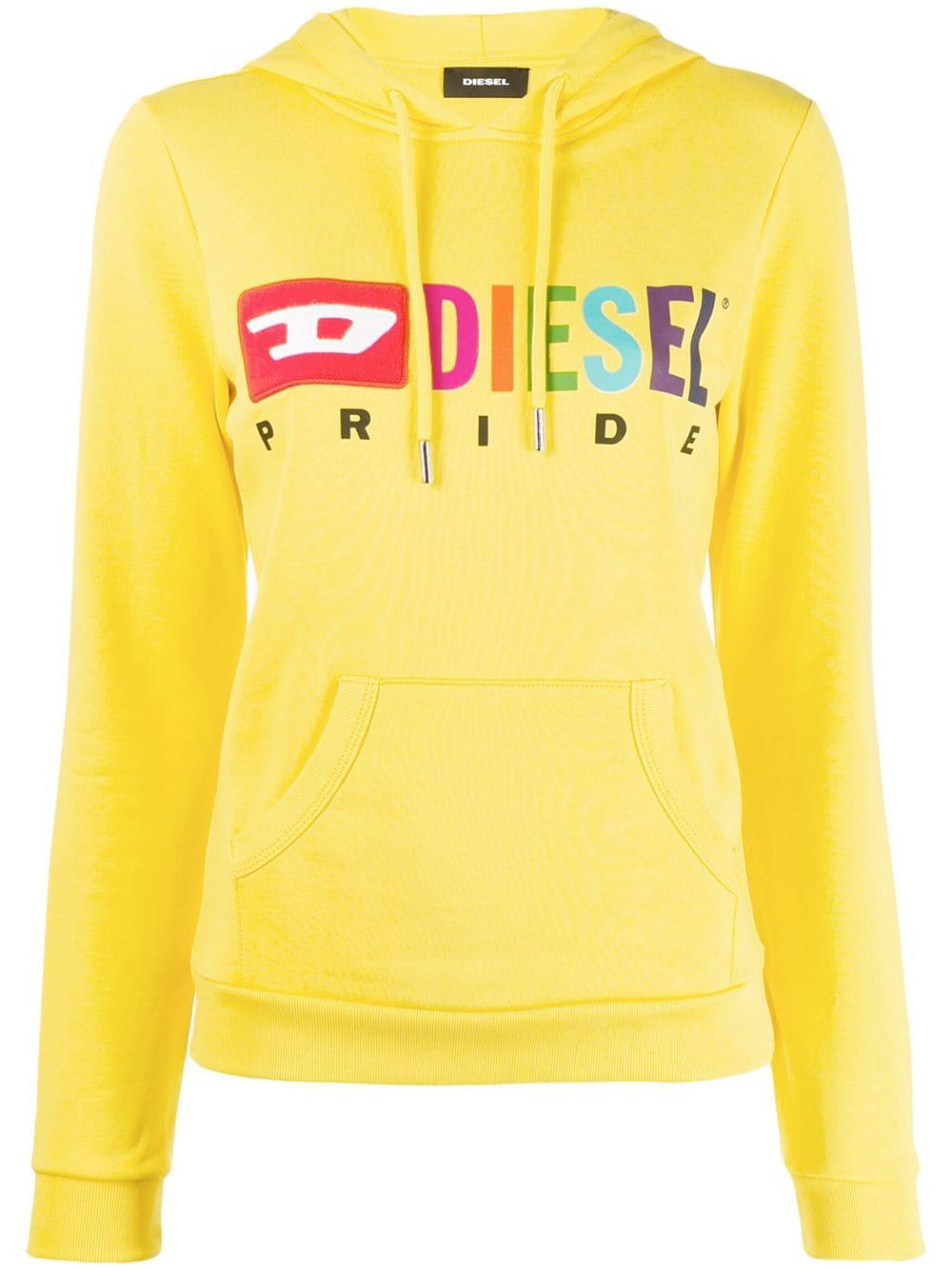 X Pride hoodie van Diesel uitgevoerd in katoen voorzien van capuchon met trekkoord, lange mouwen, kangaroe zak, rechte zoom en centrale logoprint. Kleur: geel