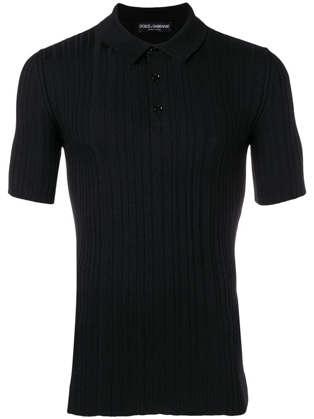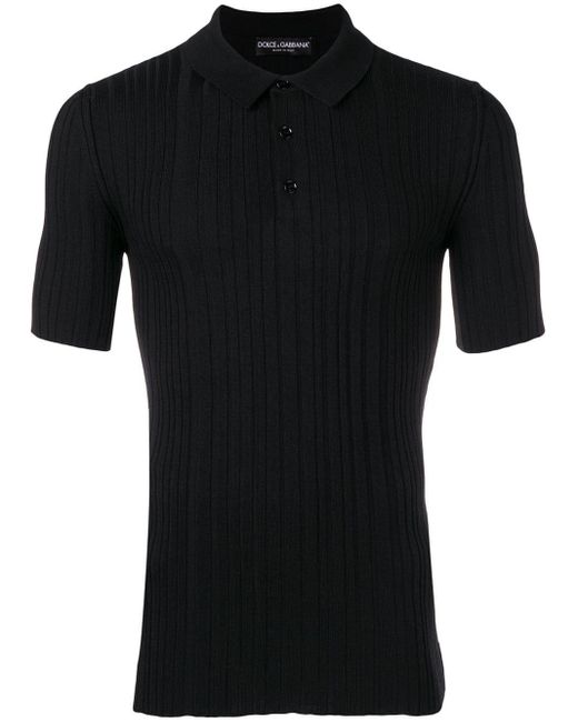 Gebreid poloshirt van Dolce & Gabbana voorzien van polo kraag, korte mouwen, strak silhouet en rechte zoom. Kleur: zwart