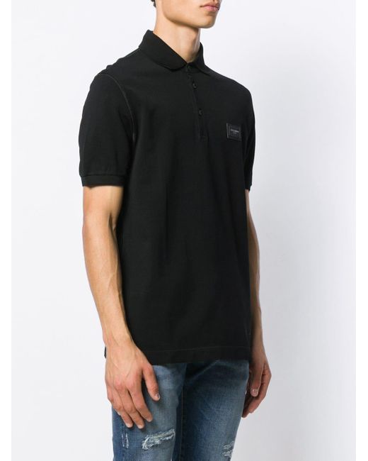 Poloshirt met logo plakkaat van Dolce & Gabbana uitgevoerd in katoen voorzien van polo kraag, korte mouwen en rechte zoom. Kleur: zwart