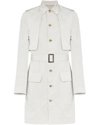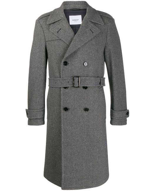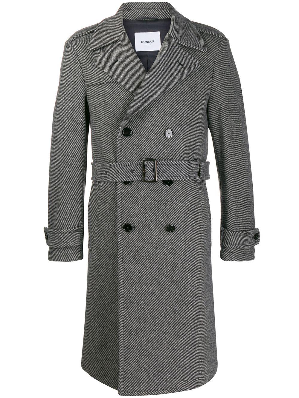 Gestreepte trenchcoat van Dondup voorzien van gekartelde revers, sluiting met dubbele rij knopen aan de voorzijde, ceintuur, lange mouwen, tweekleurig design en middellange lengte. Kleur: grijs