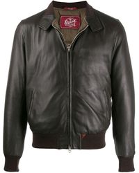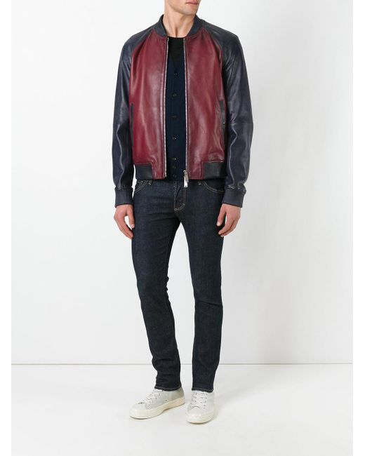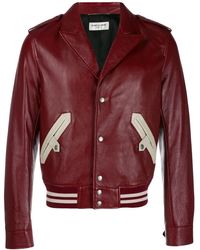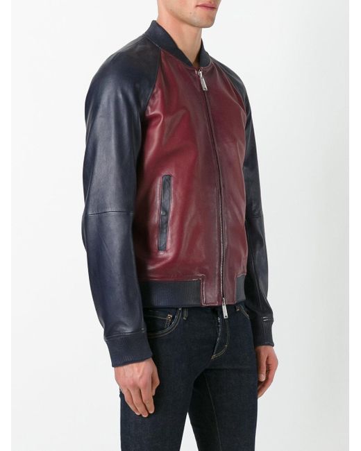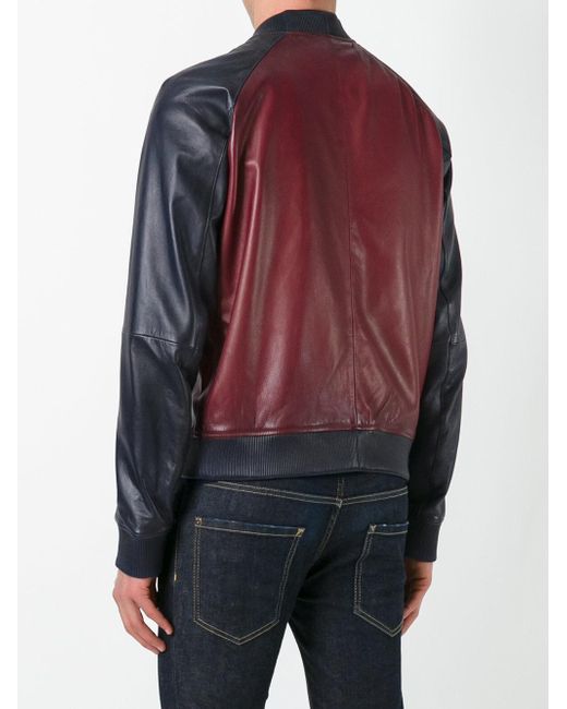 Contrasted Leather Bomber Jacket in het rood voor heren