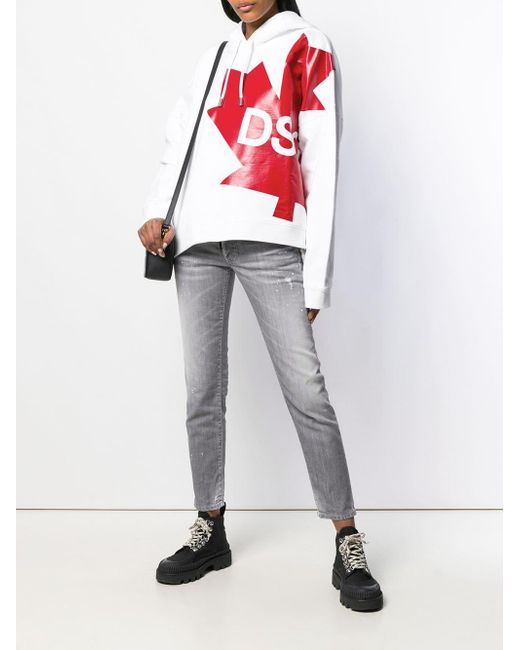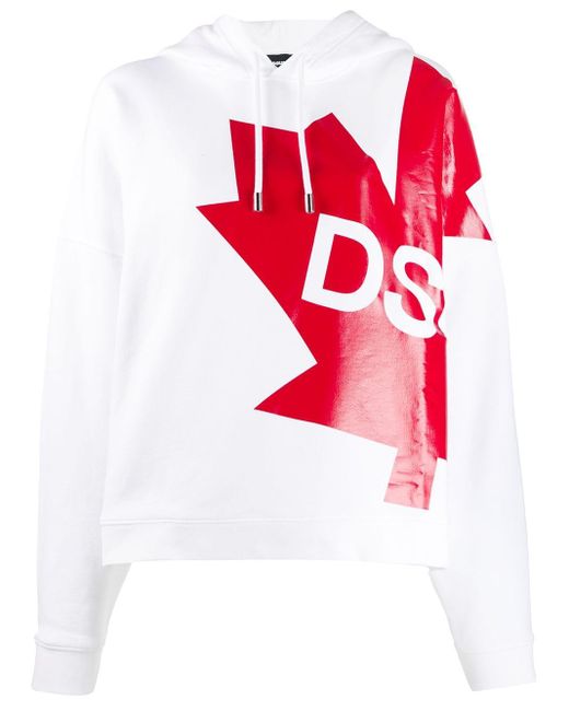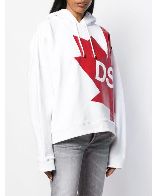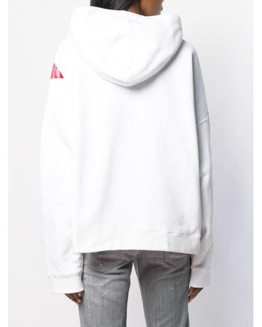 This Canada hoodie from DSQUARED2 combines style with patriotic pride. Made from white cotton, it features a hood with drawstring tie fastenings, a relaxed fit and a central printed logo. Kleur: wit