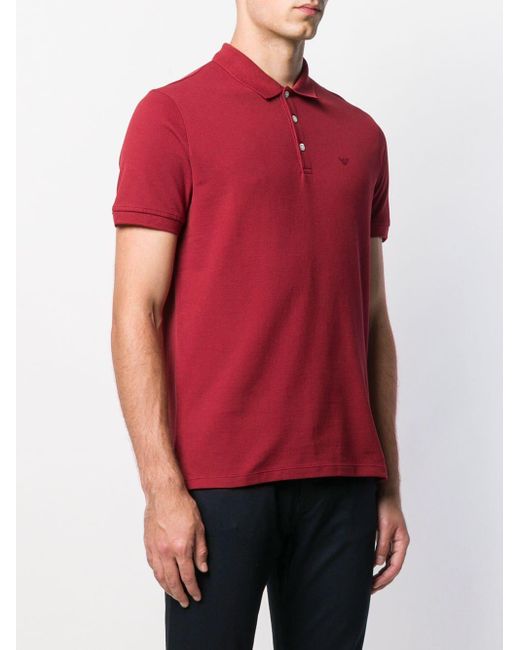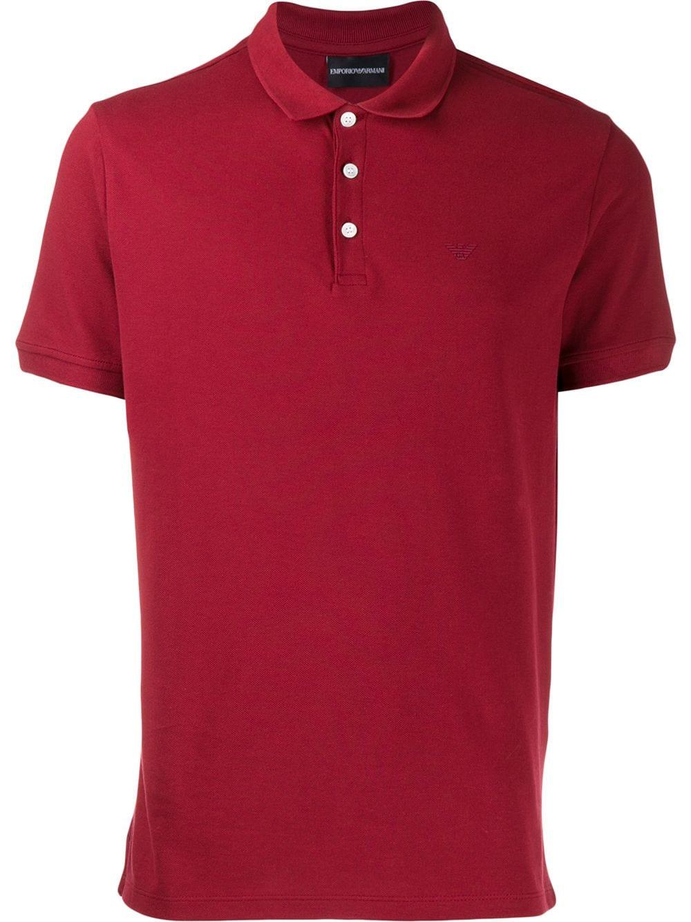 Klassiek poloshirt van Emporio Armani uitgevoerd in katoen voorzien van polo kraag, geribde zoom, slim fit en geborduurd designlogo op de borst. Kleur: rood