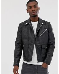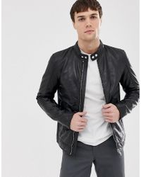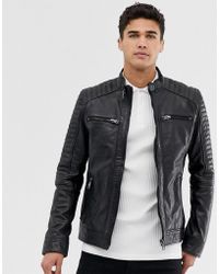 Cropped Stud Detail Biker Jacket in het zwart voor heren