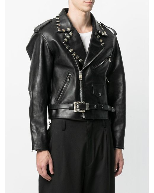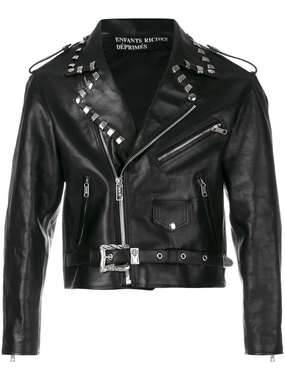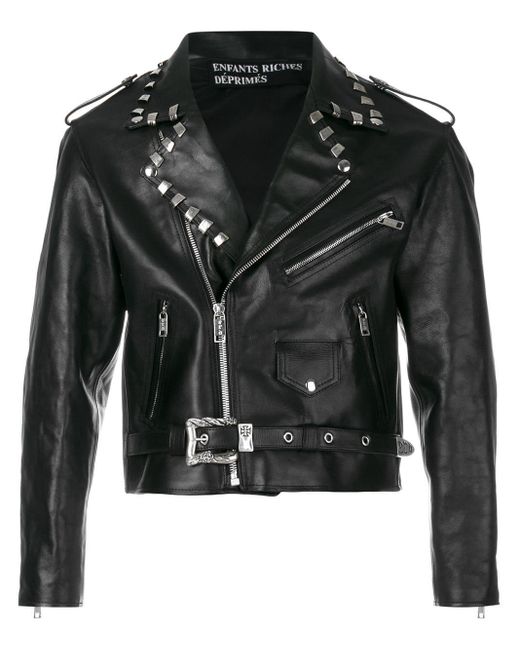 Cropped stud detail biker jacket van Enfants Riches Déprimés uitgevoerd in leder. Kleur: zwart