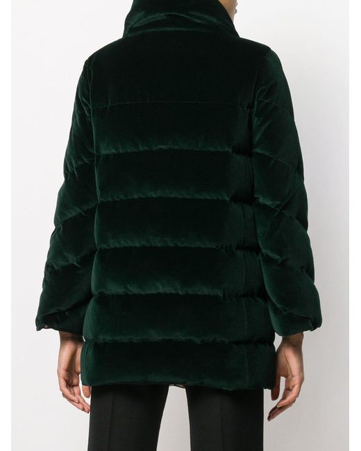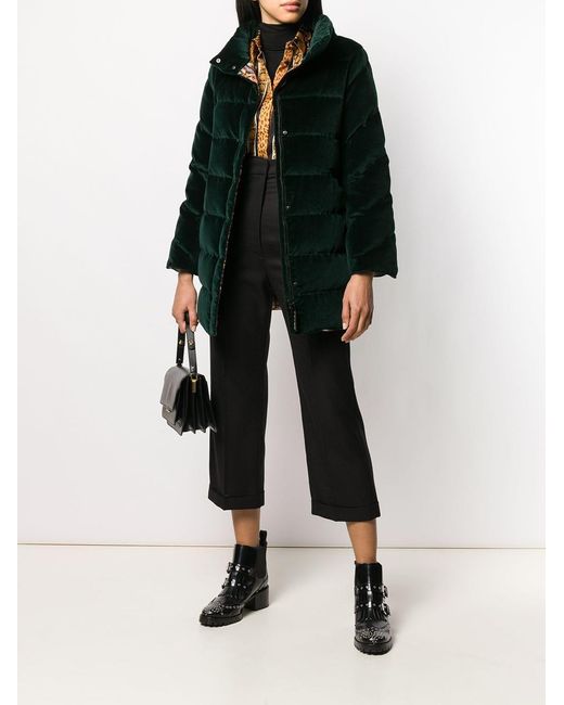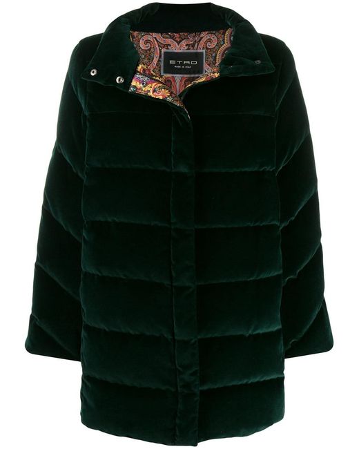 Mantel met enkele rij knopen van Etro voorzien van knoop kraag, stiksels, contrasterende inzetstukken, volledige voering en rechte zoom. Kleur: groen