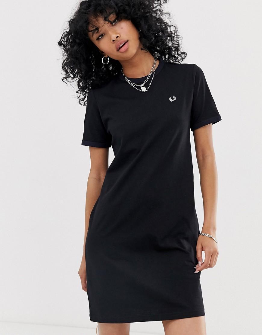 Mini-jurk van Fred Perry, Voor overdag, Ronde hals, Korte mouwen, Geborduurd logo, Regular-fit, Gewoon jouw normale maat kiezen. Sinds 1940 zorgt de mix tussen sportkleding en gewone kleding van Fred Perry voor een preppy look. Het klassieke ontwerp van het piqué poloshirt is verwerkt in T-shirtjurken en blouses. Het Pied-de-Poule ruitje is een verwijzing naar a1> Fred Perry's geschiedenis. Vind exclusieve samenwerkingen en limited editions en een scala aan canvas pumps en desert boots, aangevuld door eclectische accessoires, inclusief sjaals met kabels en vintage-geïnspireerde rugzakken. Canvas/ katoen/ rep/ repp. Kleur: zwart