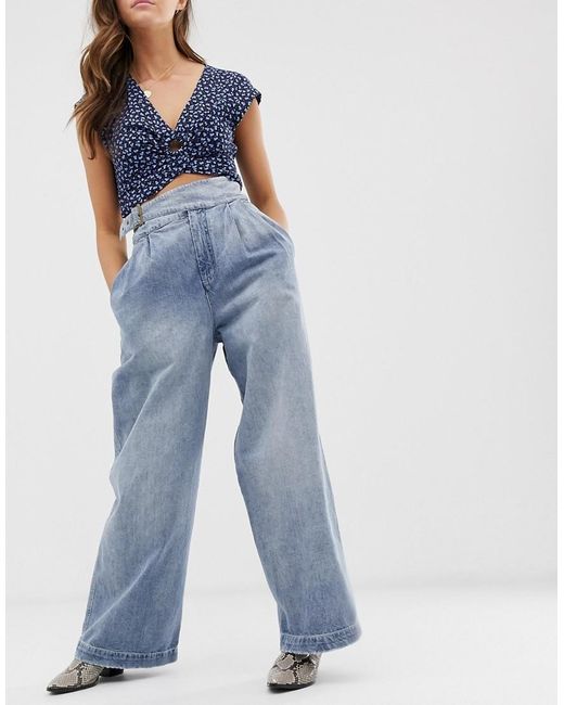 Side Buckle - Jeans Met Wijde Pijpen in het blauw voor dames