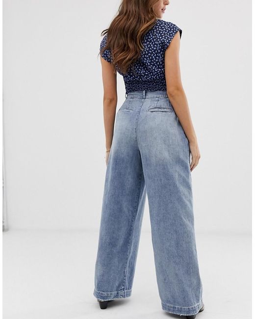 Jeans van Free People, Ja, deze vinden wij ook helemaal top, Hoge taille, Riem in de taille, Blinde ritssluiting, Twee zijzakken, Wijde pijpen, Regular-fit, Maat valt normaal. Free People dateert uit de jaren 70 en laat zich inspireren door kunst, mode, muziek en reislust. Het merk is vrouwelijk van geest en heeft een Boho-karakter. Van zoet tot krachtig, tomboy tot romantisch, Free People combineert kleuren en prints in een inspirerende collectie soepelvallende lange jurken, superzacht jersey en leren enkellaarsjes. Katoen/ print. Kleur: blauw