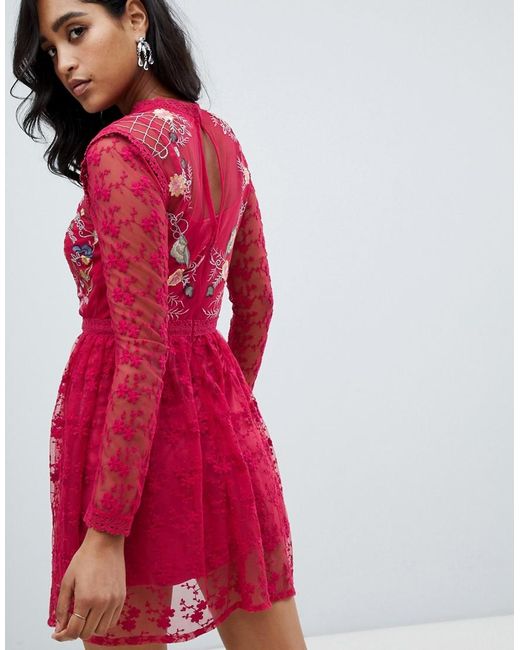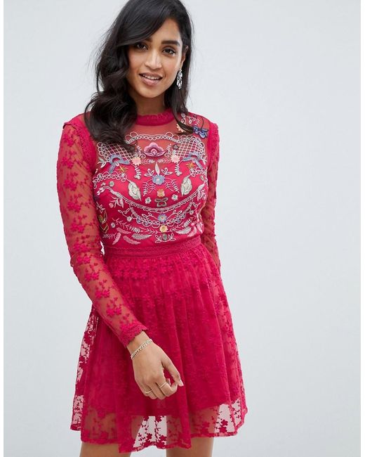 Skater-avondjurk Met Geborduurd Kant In Rood voor dames