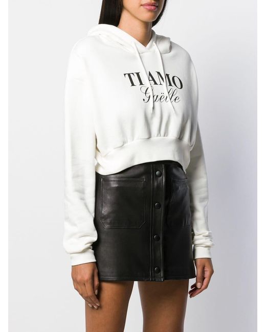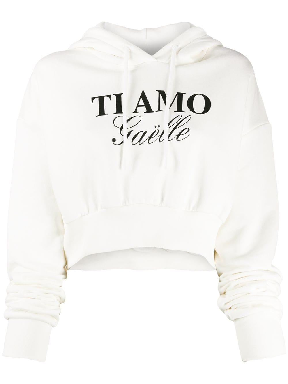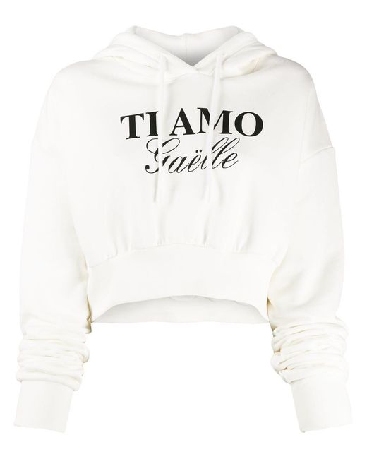 Hoodie met trekkoord van Gaelle Bonheur uitgevoerd in katoen voorzien van capuchon met trekkoorden, een cropped lengte, lange mouwen, aansluitende manchetten en slogan detail. Kleur: wit