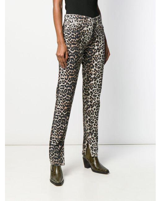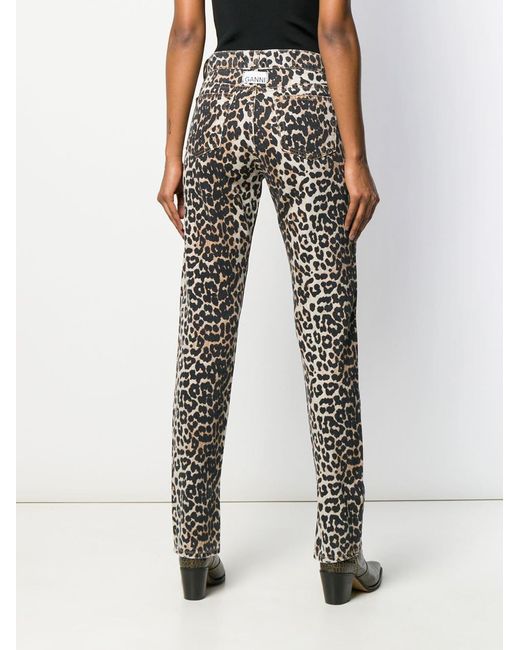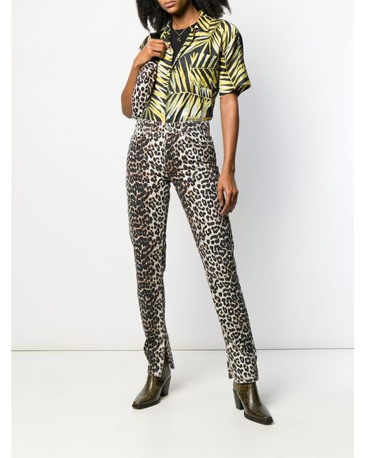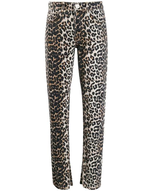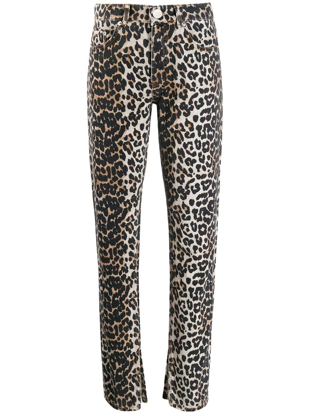 Slim-fit jeans van Ganni voorzien van mid-rise, tailleband met riemlussen, five-pocket-design, knoopsluiting aan de voorzijde, slim fit, standaard lengte en luipaardprint. Kleur: zwart