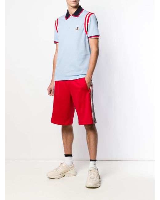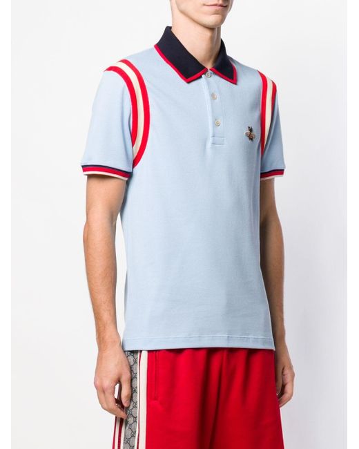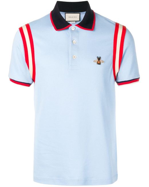 The Gucci AW18 collection is characterised by an eclectic mix of themes, however, a stand out tenet of the assortment is the brand's obvious love of logos. This light blue cotton stretch embroidered bee polo shirt from Gucci features a classic polo collar, a front button placket, short sleeves, a straight hem and red and white web trim details at the shoulders.
