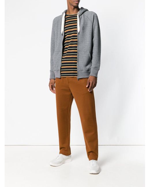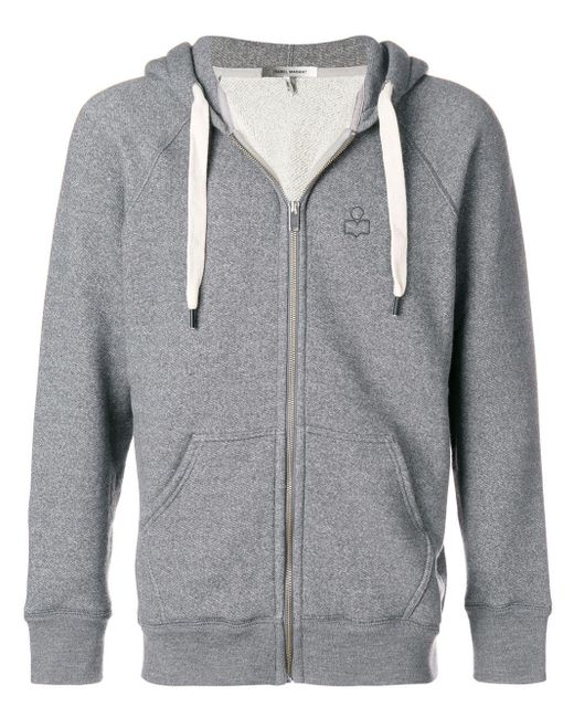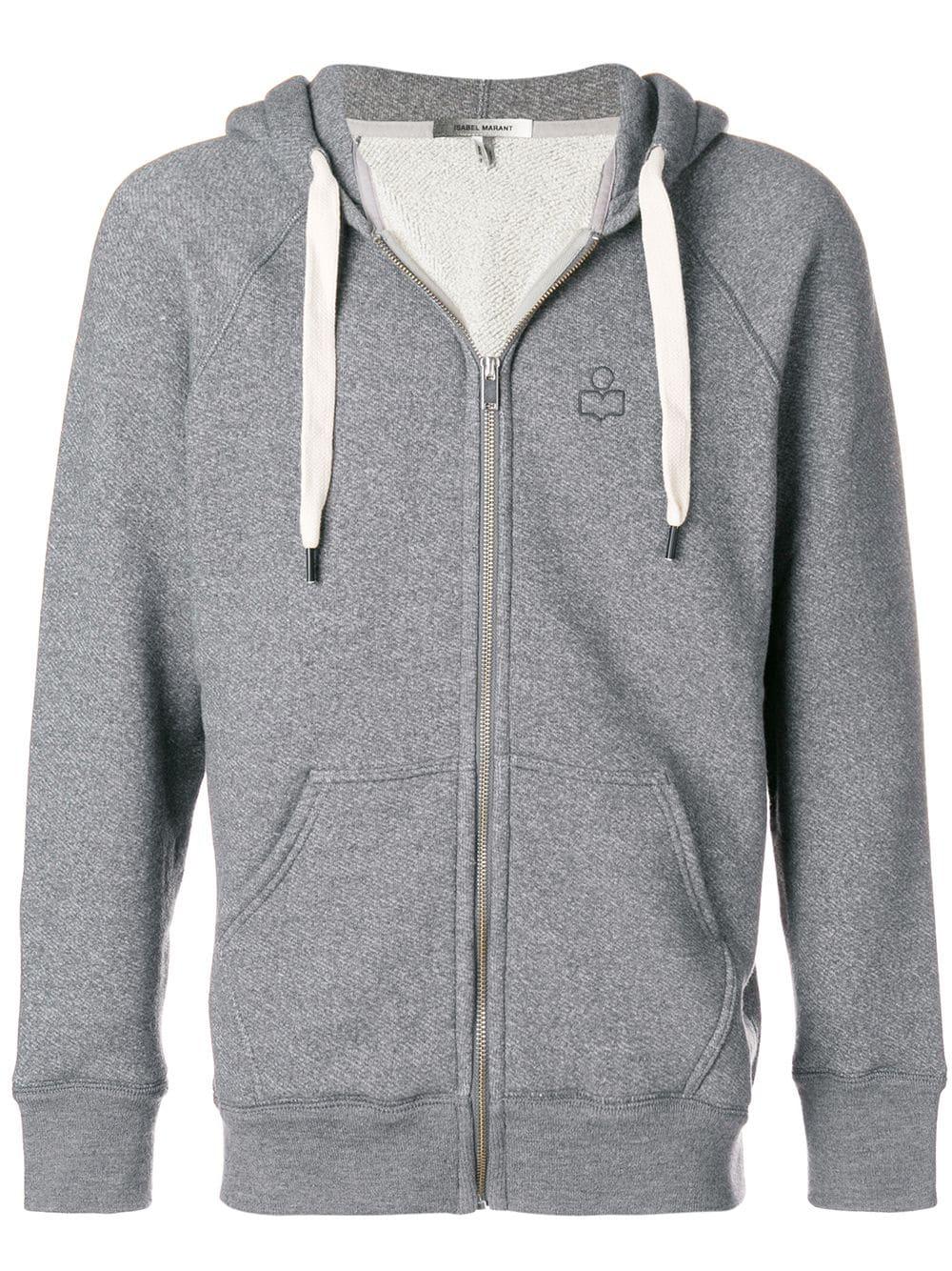 Iconic Parisian designer Isabel Marant recently launched a menswear collection, introducing her signature laid-back attitude and carefree spirit to wearable wardrobe staples for the modern gentleman. This grey cotton blend hoodie features a hood with drawstring tie fastenings, long length raglan sleeves, a front zip fastening, kangaroo pockets and an embroidered designer logo to the chest. Kleur: grijs