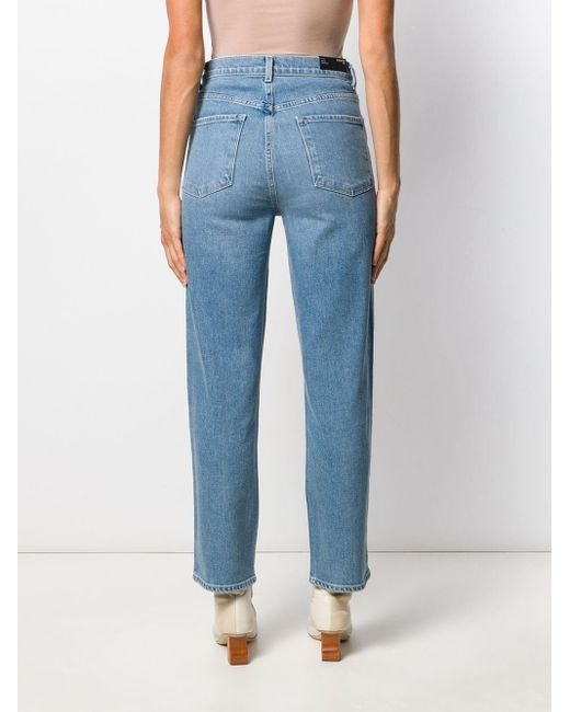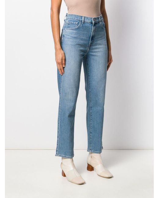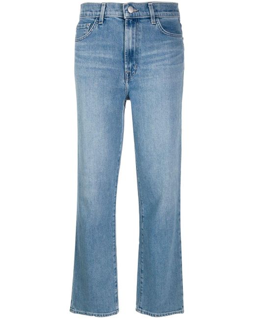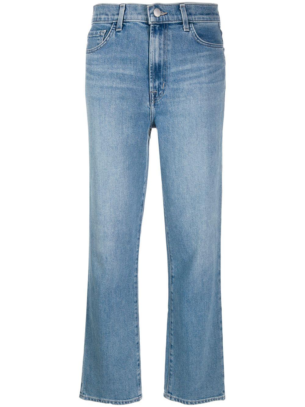 Denim jeans van J Brand uitgevoerd in gemixt katoen voorzien van knoop-en ritssluiting voorzijde, five-pocket-design, tailleband met riemlussen, rechte pijpen, ingekorte lengte en distressed detail. Kleur: blauw