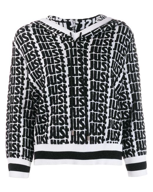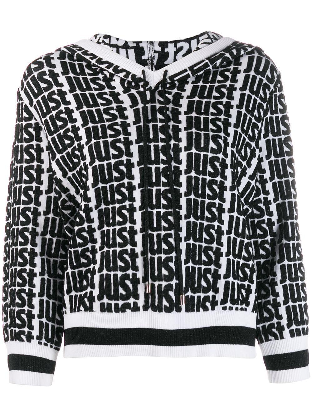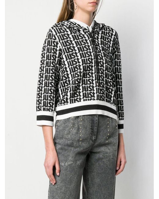 Hoodie met logoprint van Just Cavalli voorzien van capuchon met trekkoord, laag geplaatste mouwinzetten, driekwartsmouwen, all-round logo print, geribde zoom en manchetten, rechte zoom en een cropped lengte. Kleur: wit