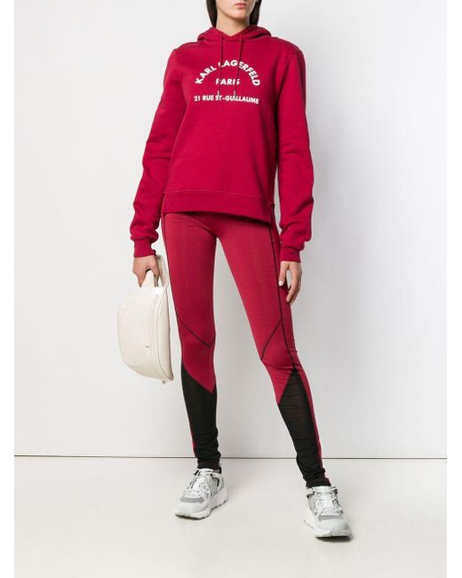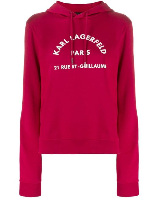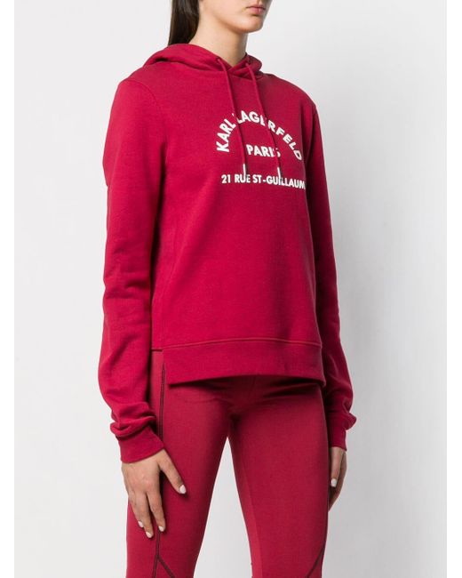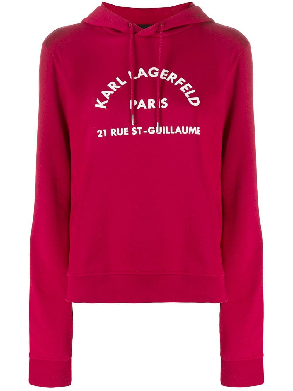 Hoodie met adres logo van Karl Lagerfeld uitgevoerd in katoen voorzien van capuchon met trekkoord, lange mouwen, kangaroe zak en geribde zoom en manchetten. Kleur: rood
