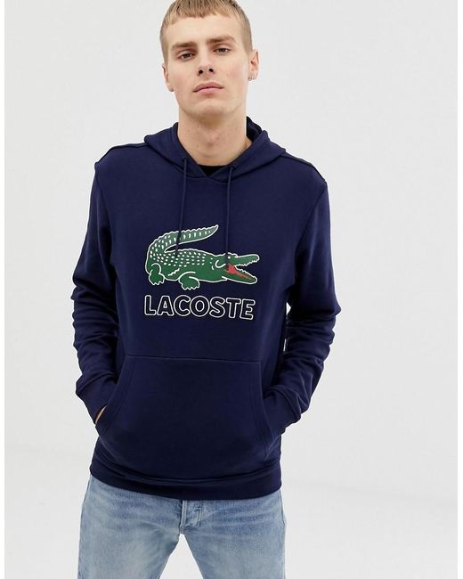 Hoodie Met Capuchon En Krokodillenlogo In Marineblauw in het zwart voor heren