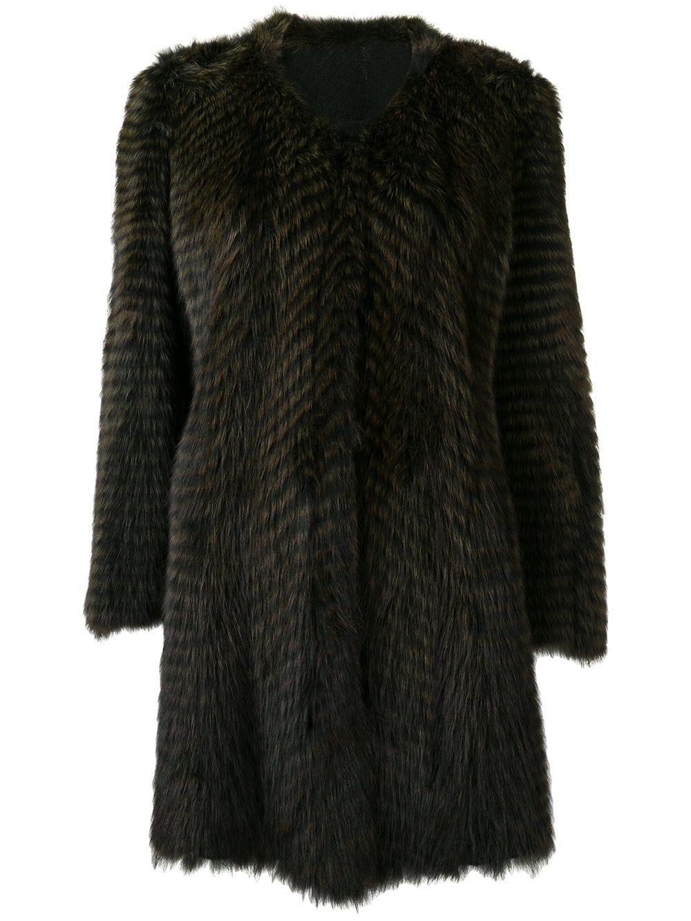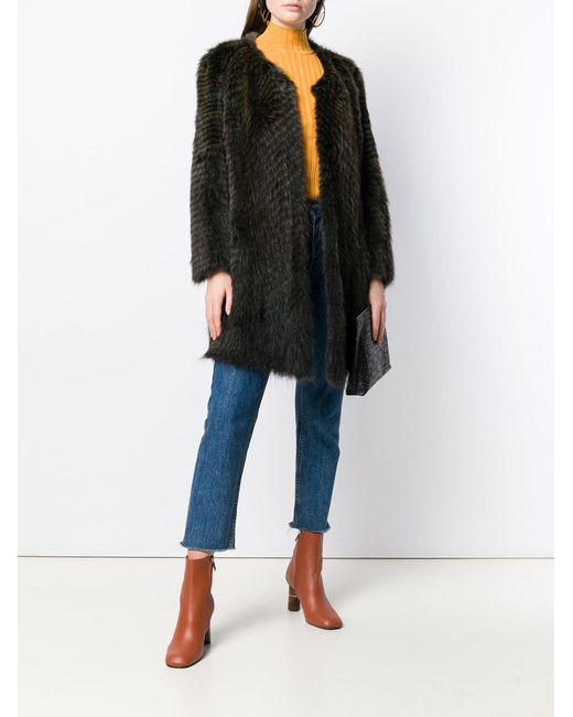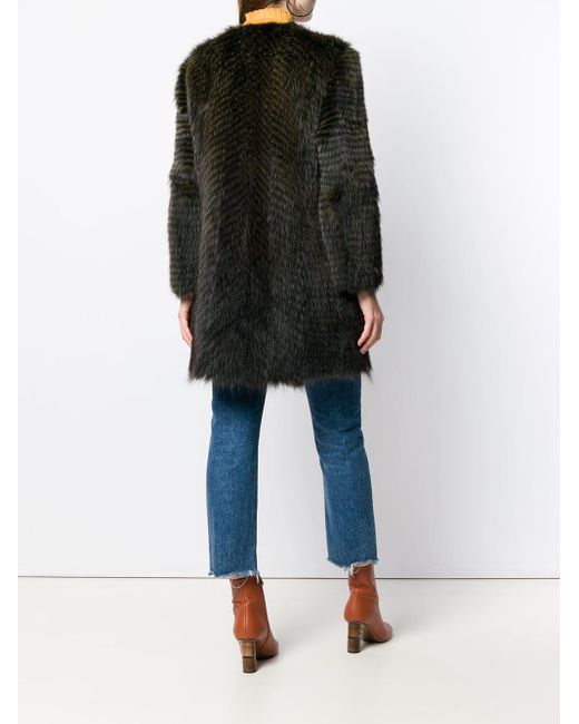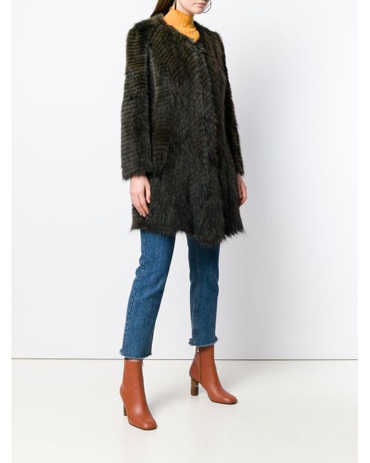 Mantel met enkele rij knopen van Liska voorzien van ronde hals, verborgen sluiting voorzijde, lange mouwen, zijzakken en middellange lengte. Kleur: groen