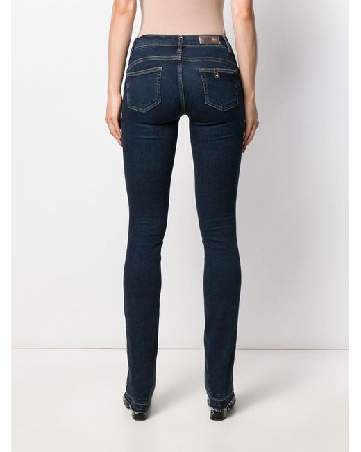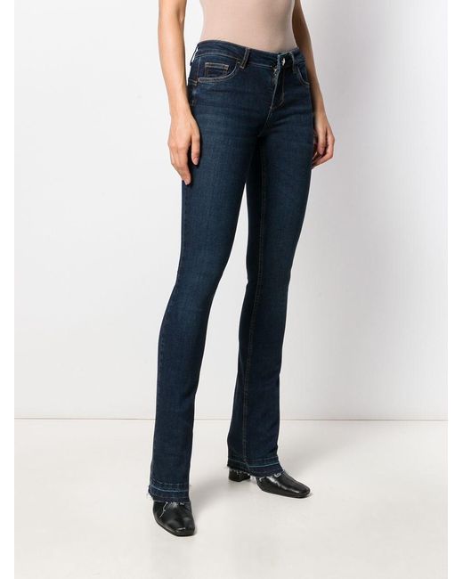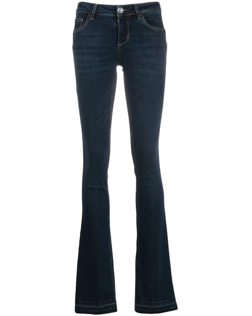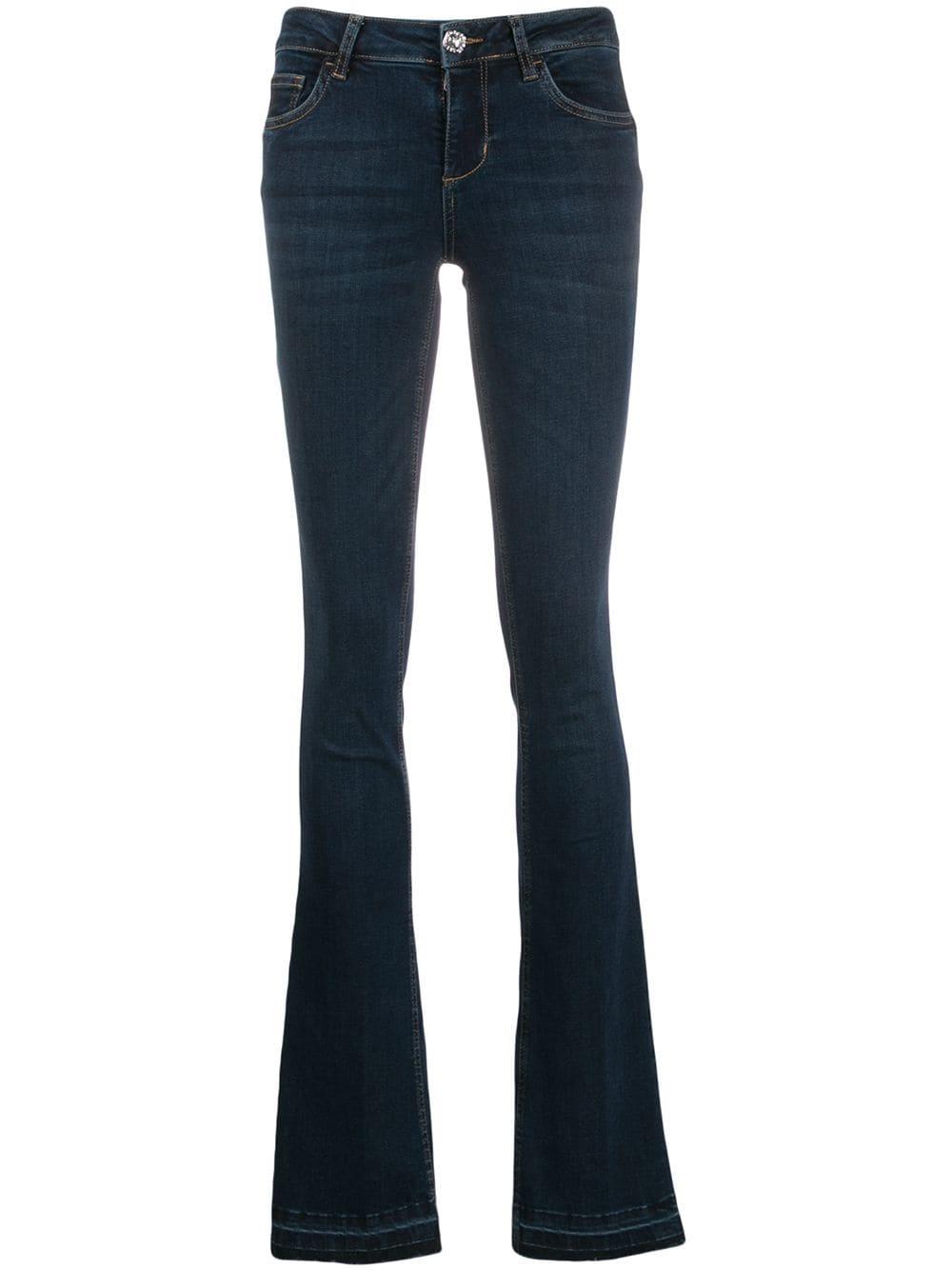 Jeans verfraaid met kristallen van LIU JO voorzien van mid-rise, five-pocket-design, ritssluiting met knoop, wijd uitlopende pijpen, riemlussen en onafgewerkte zoom. Kleur: blauw