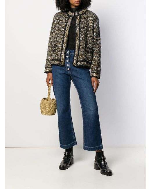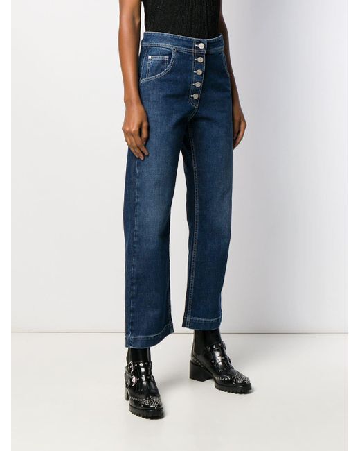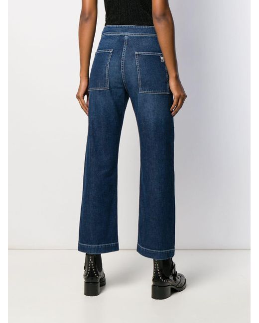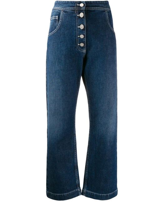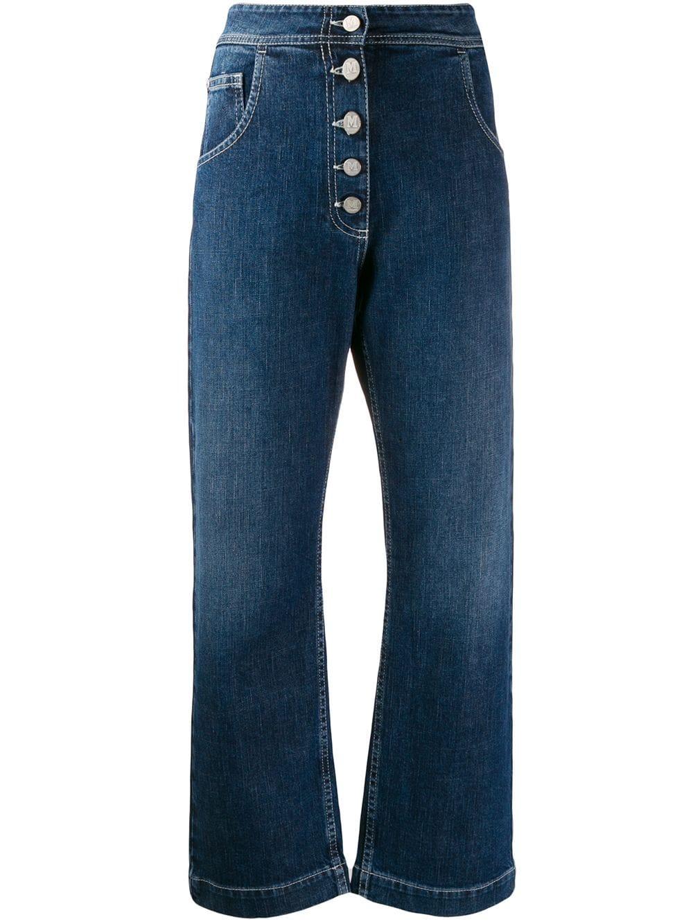 Jeans met wijde pijpen van M Missoni uitgevoerd in gemixt katoen voorzien van high-rise, five-pocket-design, wijd uitlopende pijpen en stonewash- effect. Kleur: blauw